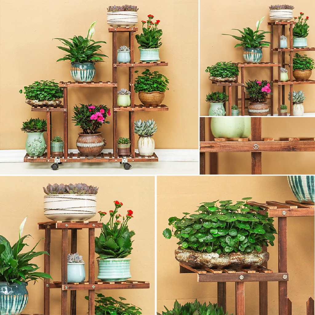 2764fir Wood Plant Flower Pot Stand Shelf Rack Display Wheels Shopee Philippines