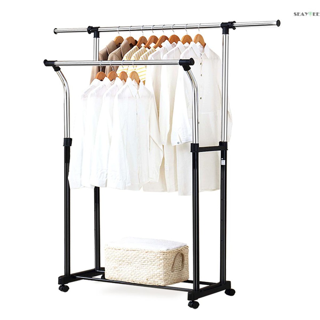 Seay Ready Stock Home Organizer Removable Double Rail Garment Rack Rolling Laundry Drying Rack Clothes Holder Storage Organizer With Bottom Shelf Adjustable Height Length For Home Bedroom Shopee Indonesia
