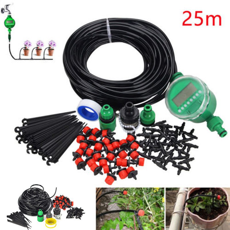 25m Diy Micro Drip Irrigation Auto Timer Self Plant Watering Gardening Hose Kit Shopee Indonesia