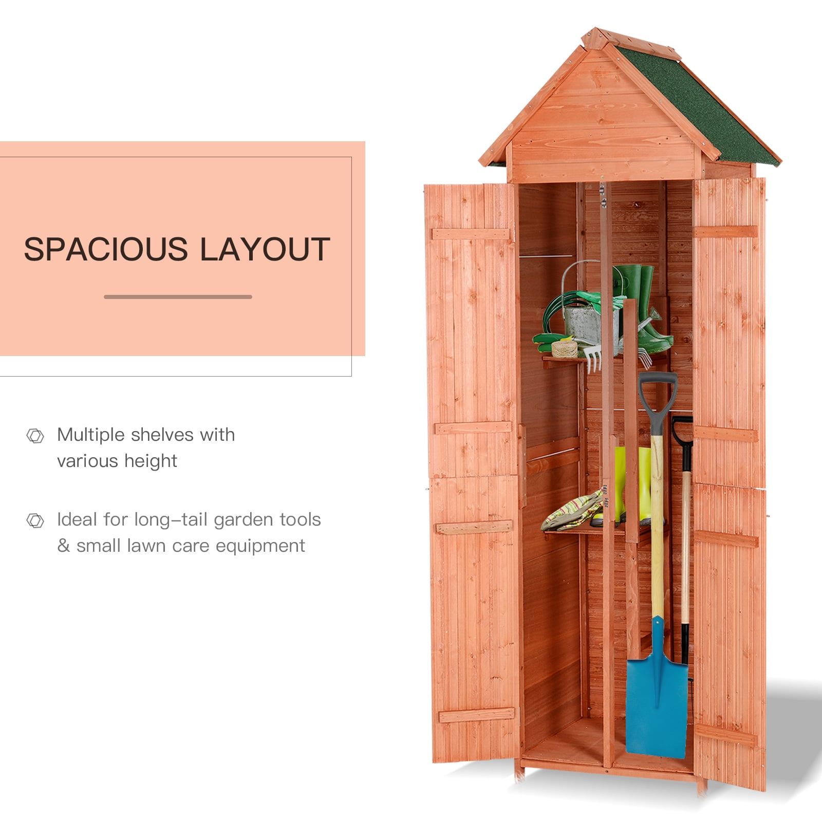 Outsunny Pine Wood Garden Shed Outdoor Tool Storage Cabinet Lockable Arrow Hutch Unit With Double Door And Shelves Patio Lawn Garden Thebullinnpub Outdoor Storage