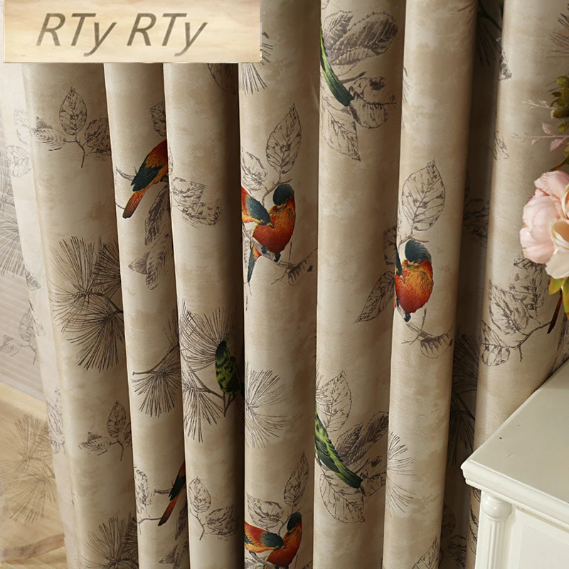 Vintage Birds Print Country Curtains For Living Room Bedroom Decorative Kitchen Curtains Drapes Window Treatments Rustic Style Curtains Aliexpress