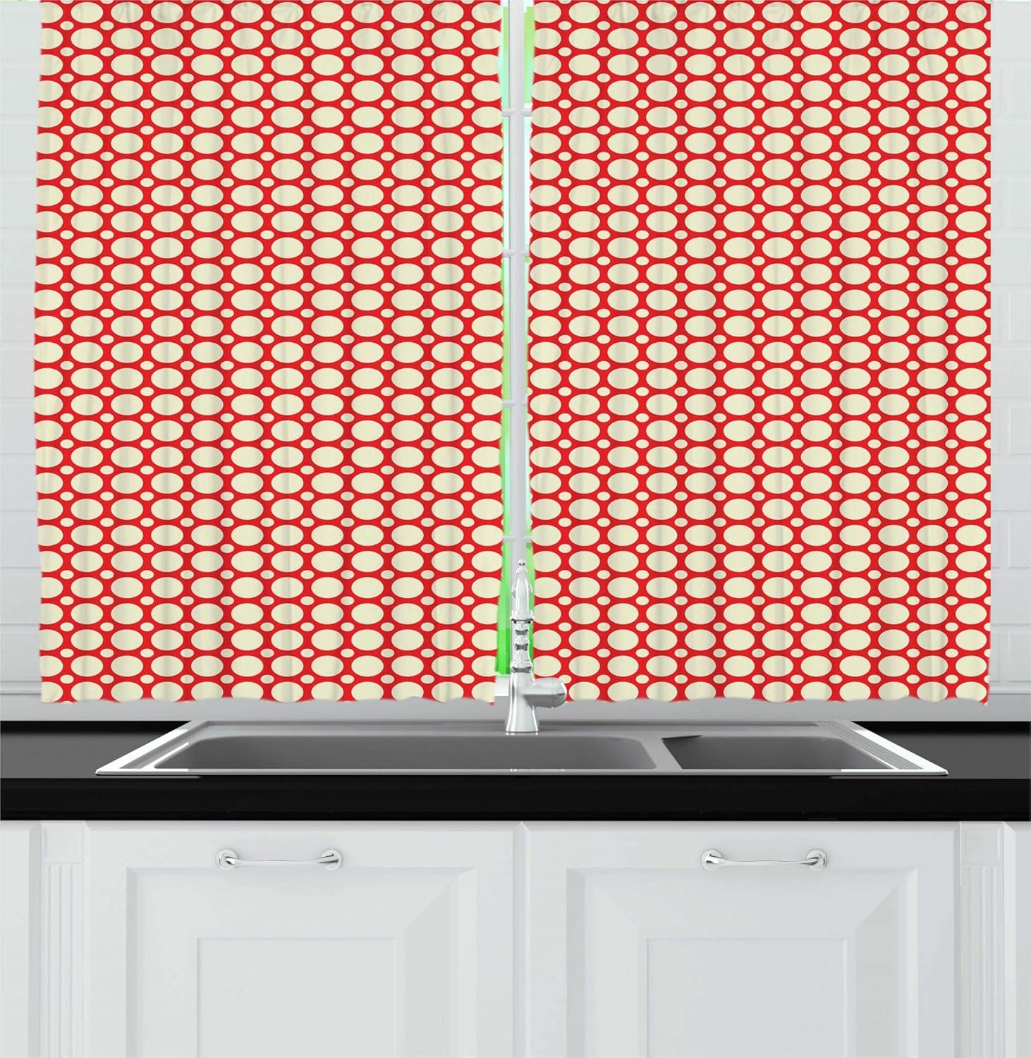 Amazon Com Ambesonne Retro Kitchen Curtains Big And Small Polka Dots Pattern Symmetrical Geometric Tile Design Vintage Style Window Drapes 2 Panel Set For Kitchen Cafe Decor 55 X 39 Red Cream Home