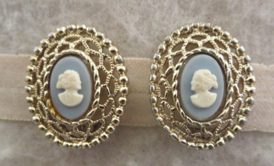 So vintage cameo earrings and antique cameo earrings or vintage jewelry in general is not a fad but a permanent part of the art jewelry scene. WHEN PURCHASING PLEASE KEEP IN MIND THAT EACH PIECE HAS A PAST. Lovely Dainty Baby Blue White Cameo Clip On Earrings Vintage 1960s 747s9.